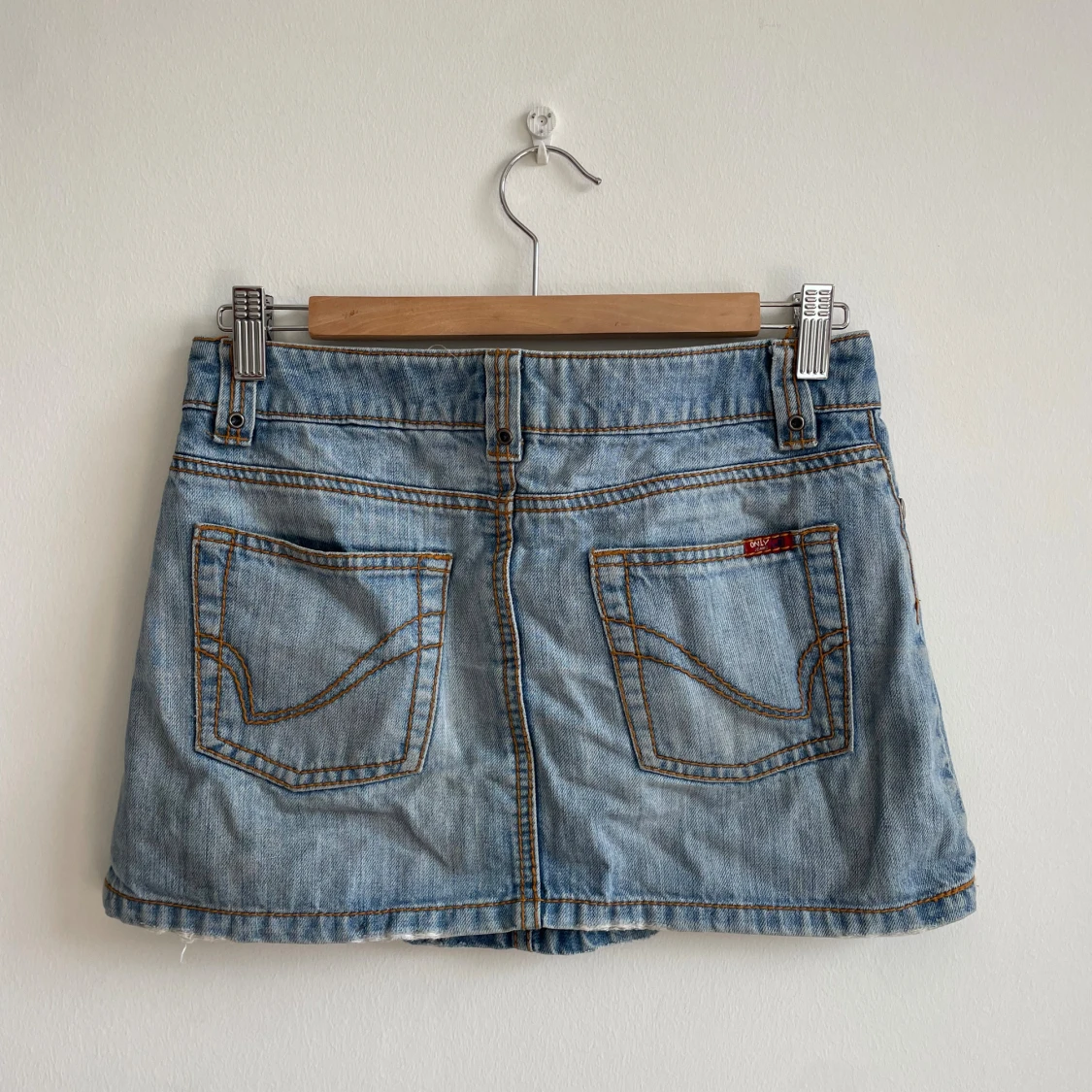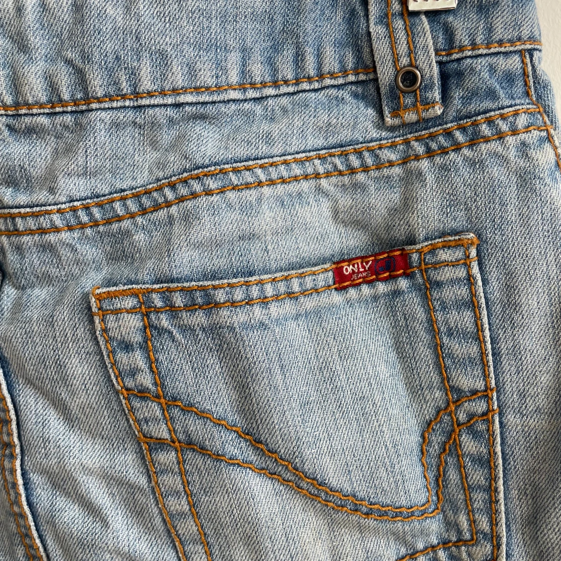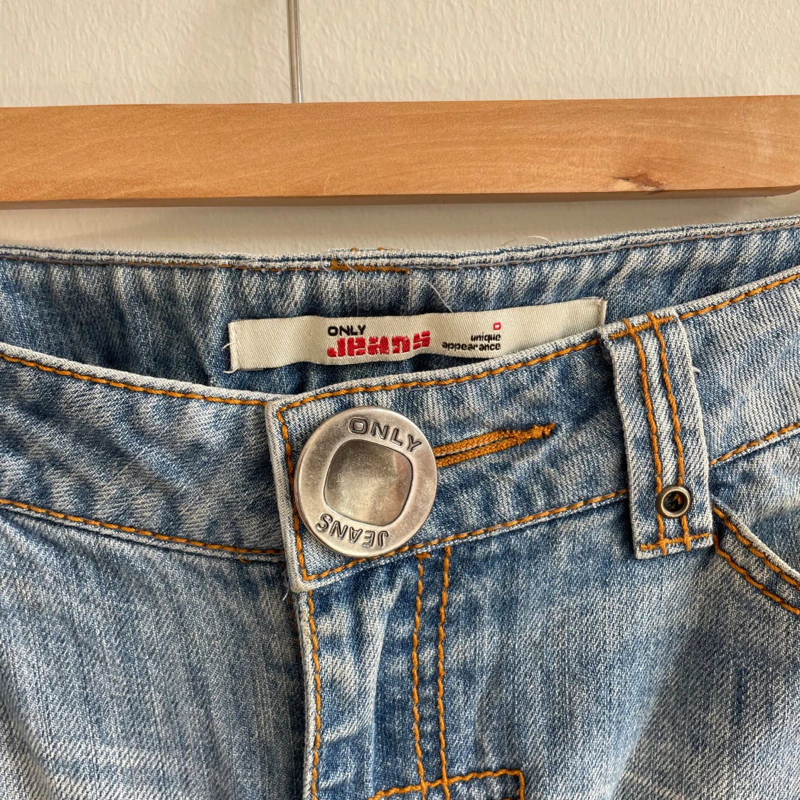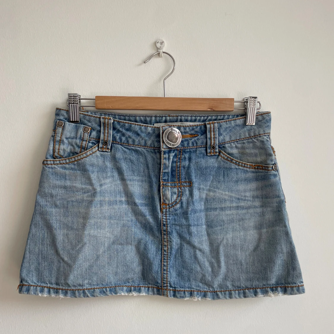 Säljer en snygg ljusblå jeanskjol från Only med klassiska fem fickor, synliga sömmar och rå kant nertill. Kjolen har knapp och dragkedja framtill samt bälteshällor. Perfekt för dig som gillar en avslappnad och trendig stil.