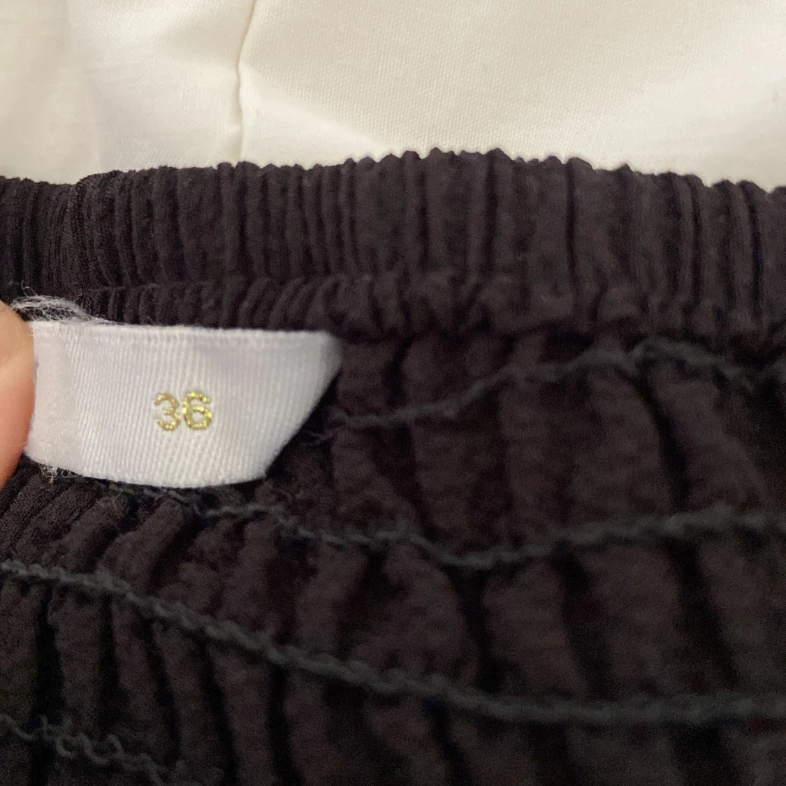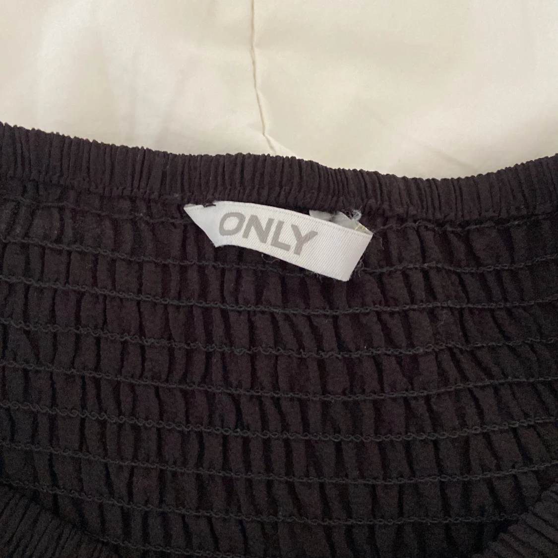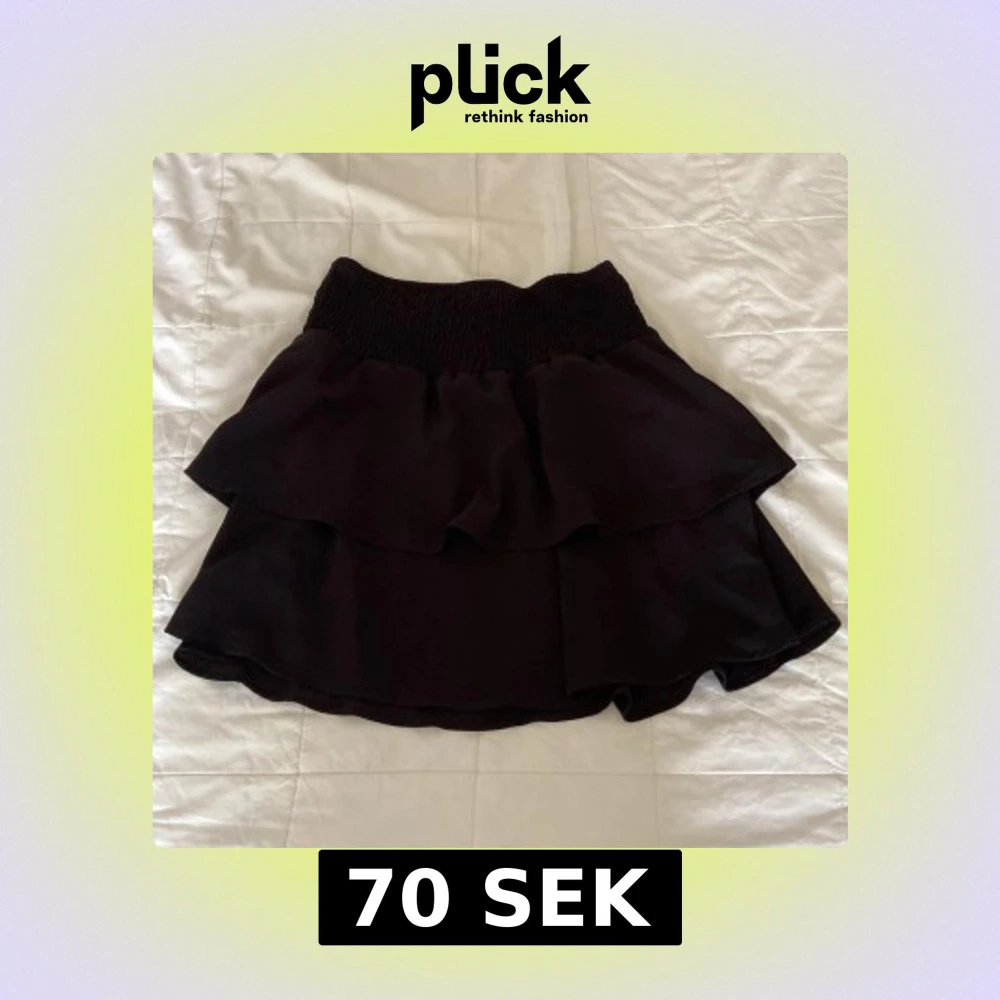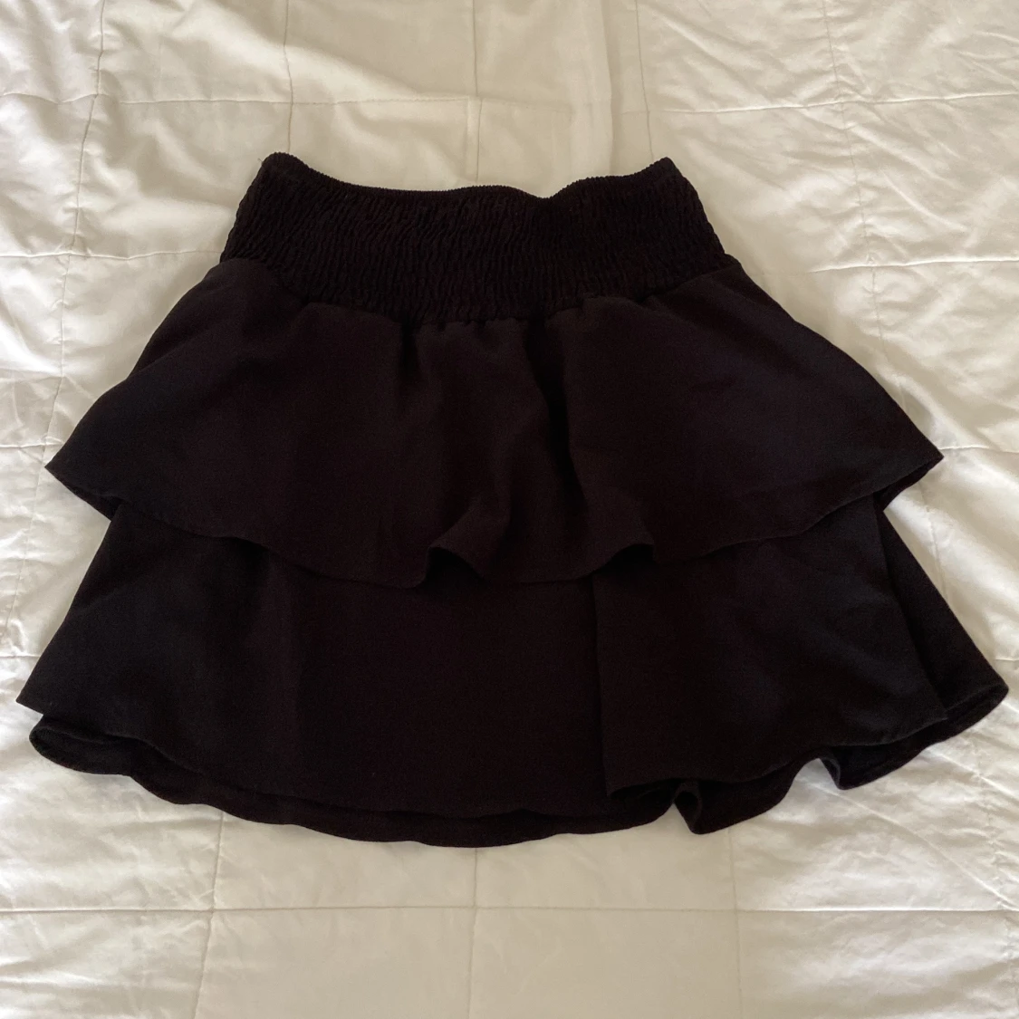 Supersöt svart kortkjol från ONLY med bred smockad midja och dubbla volanger. Kjolen har en loose passform och är perfekt för dig som gillar en enkel men trendig look. Materialet känns mjukt och lätt, vilket gör den bekväm att bära hela dagen.