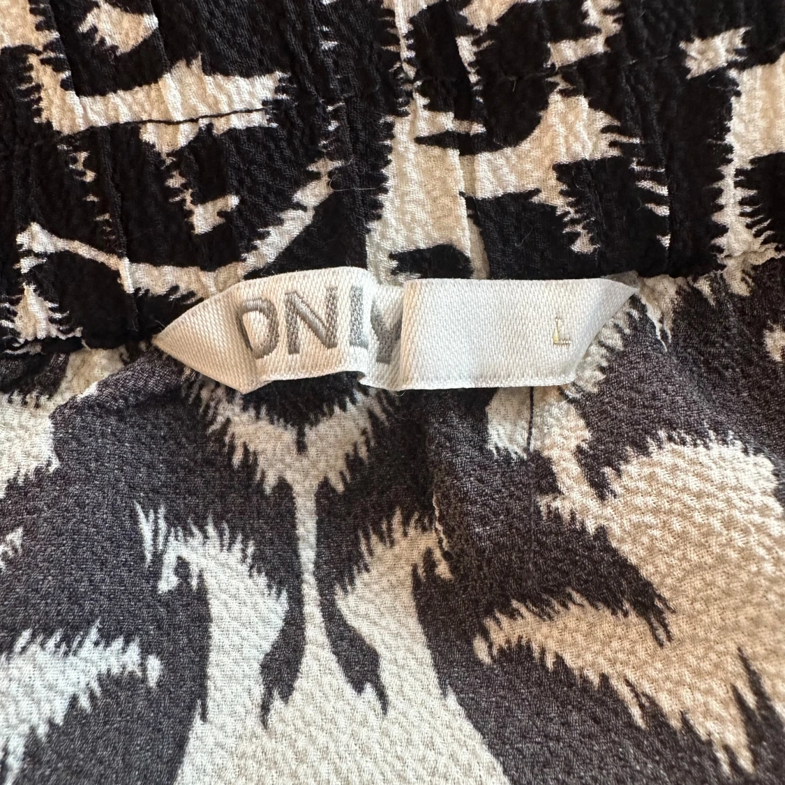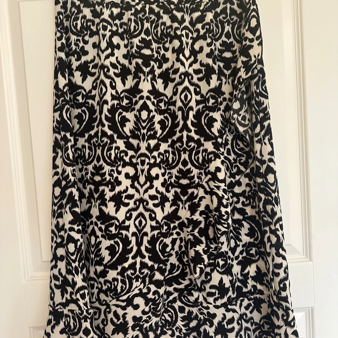 Säljer en svartvit långkjol från ONLY med ett coolt abstrakt mönster. Kjolen är tillverkad i mjuk polyester med lite stretch för extra komfort. Passformen är normal och tyget har en snygg struktur som ger kjolen en unik look.