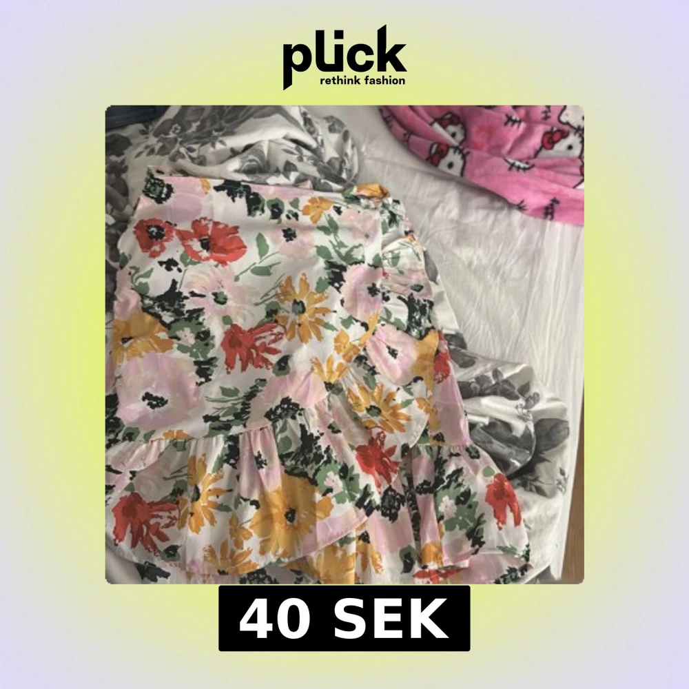 Superfin blommig kjol från ONLY med volangkant och knyt i midjan. Kjolen har färger i rosa, gul, röd, grön och svart på vit botten. Perfekt för dig som gillar färg och mönster! Modellen är kort och har en flowy passform.