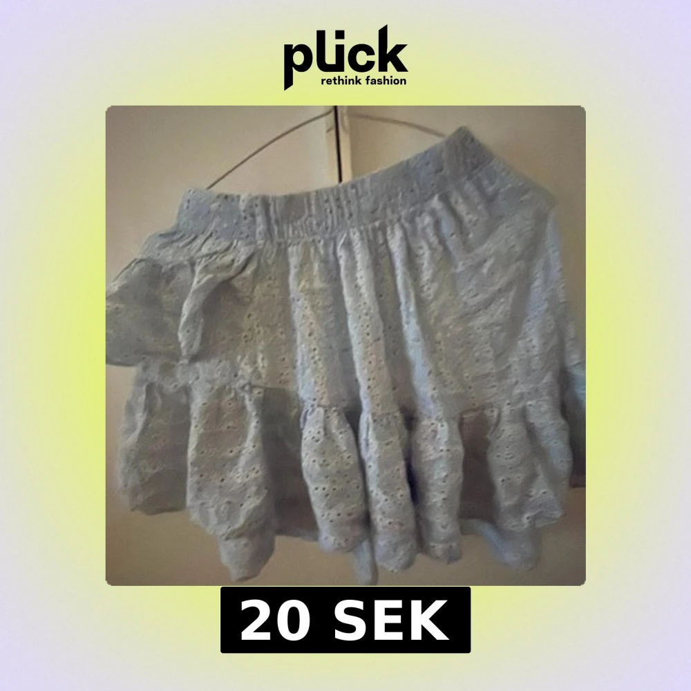 Supersöt ljusblå kortkjol från ONLY med broderade hål och volangdetaljer. Kjolen har resår i midjan och en romantisk känsla med sin spets och volanger. Perfekt för dig som vill ha en feminin och trendig look.