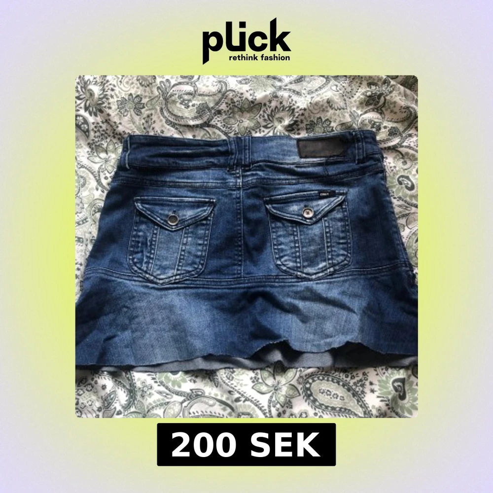 Säljer en snygg jeanskjol från ONLY i klassisk blå denim. Kjolen har två fickor med lock och knapp bak samt en rå, fransig nederkant. Perfekt för dig som gillar en avslappnad och trendig stil.