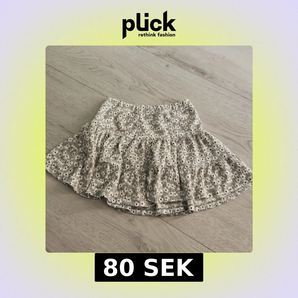 Supersöt vit kjol med små svarta blommor och volanger. Använde när jag var mindre därför är lappen borta men tror att den är I storlek 146-152💞