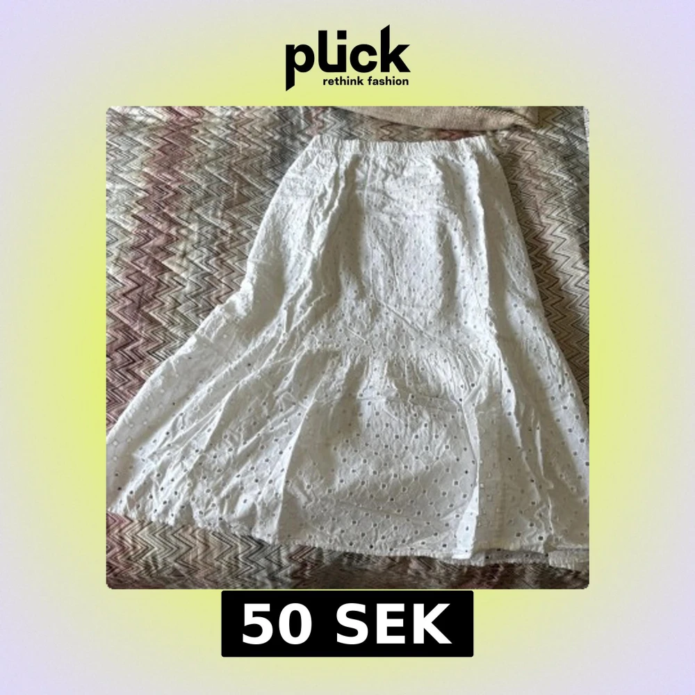 Säljer en vit långkjol med broderade detaljer och volang nertill. Kjolen har resår i midjan och är tillverkad i ett lätt bomullstyg med hålbroderi. Perfekt för varma dagar och ger en romantisk känsla till outfiten.