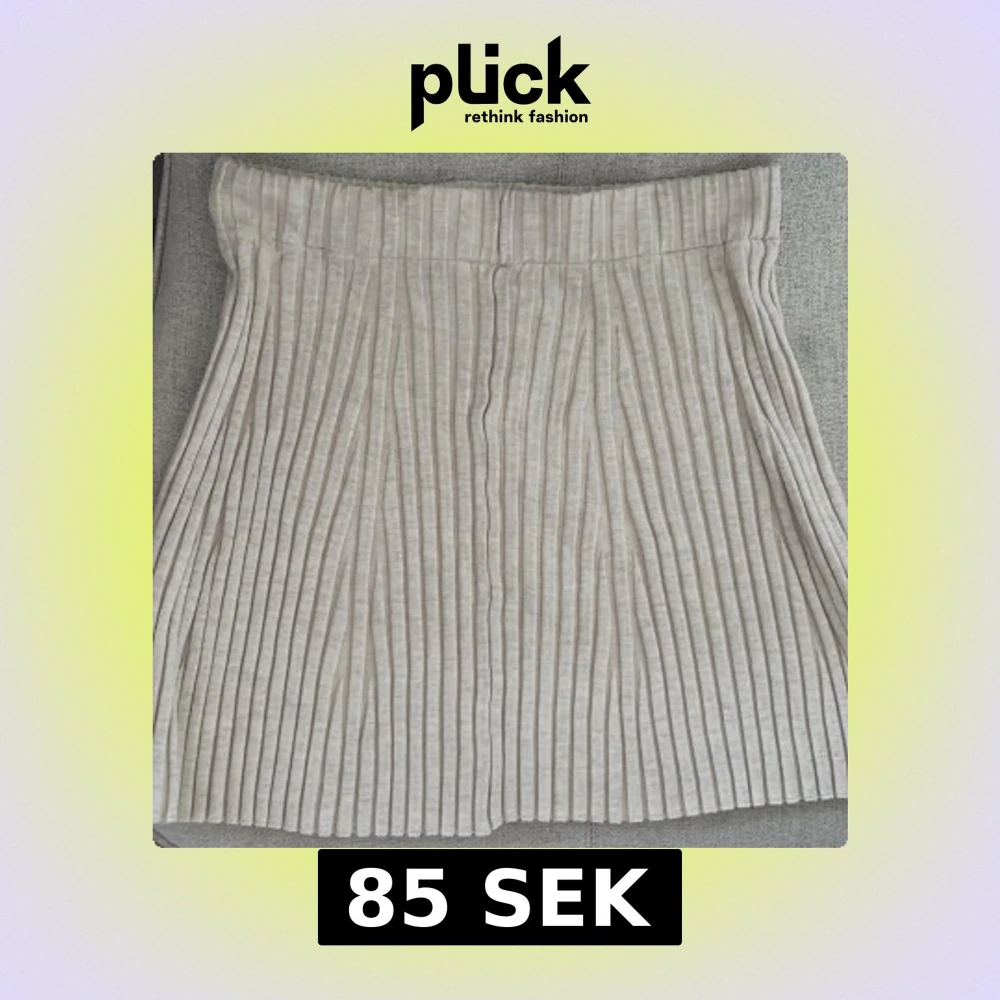 Snygg beige plisserad kortkjol med bred linning och mjukt, ribbat tyg. Kjolen har en klassisk A-linjeform och är perfekt för dig som gillar stilrena och enkla plagg. Passar till många olika looks och är superenkel att matcha.