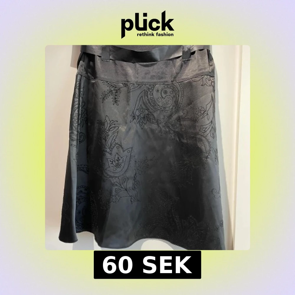 Svart söt satinkjol med subtilt blommönster och paisley-detaljer. Har aldrig används💞