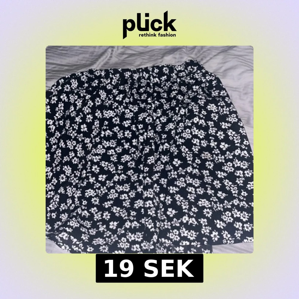 Svart kjol från SHEIN med vita blommor över hela tyget. Kjolen har en kort längd och resår i midjan för en bekväm passform. Perfekt för dig som gillar en söt och trendig stil.