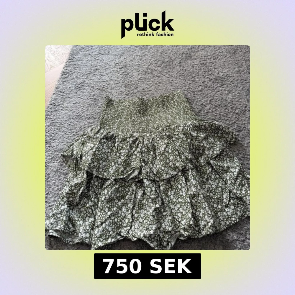Supersöt grön kortkjol från Designers Remix med vitt blommigt mönster. Kjolen har smockad midja och flera lager med volanger som ger en flowy och chill vibe. Perfekt för dig som gillar att sticka ut med detaljer och mönster.