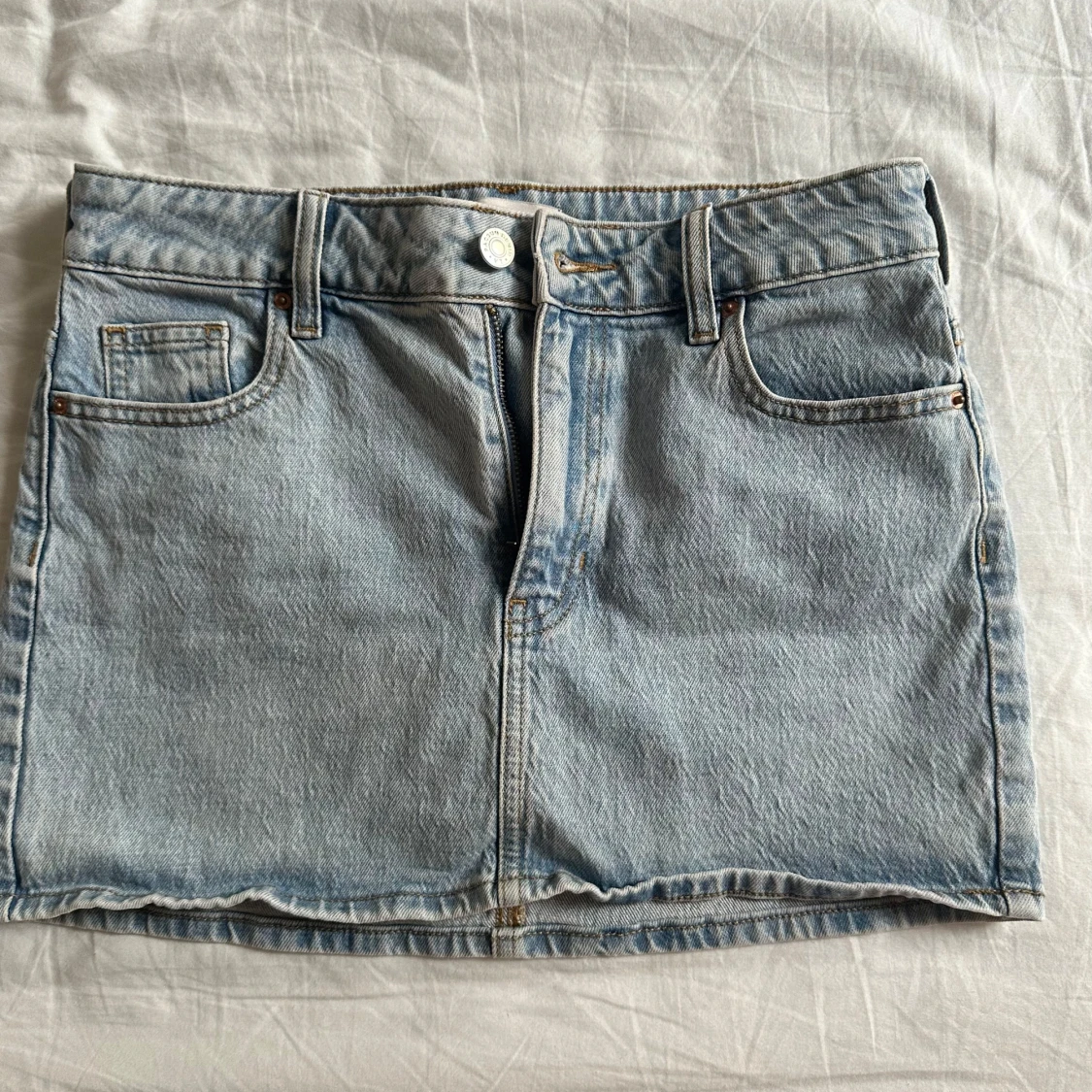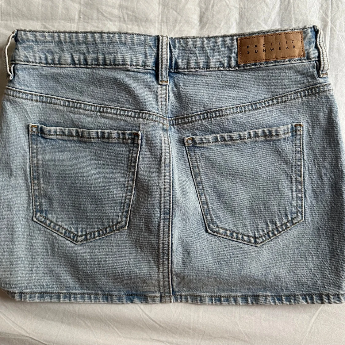 Säljer en ljusblå jeanskjol från Pacsun med klassisk femficksdesign, bälteshällor och knappstängning framtill. Kjolen har raka linjer och en enkel, stilren look som passar perfekt till sneakers eller boots. Använt en gång.