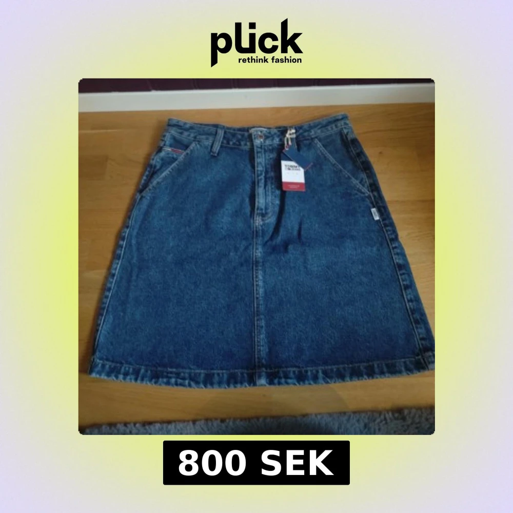 Snygg jeanskjol från Tommy Jeans i klassisk blå denim. Kjolen har en normal passform med praktiska fickor både fram och bak. Fickorna fram ska klippas upp.