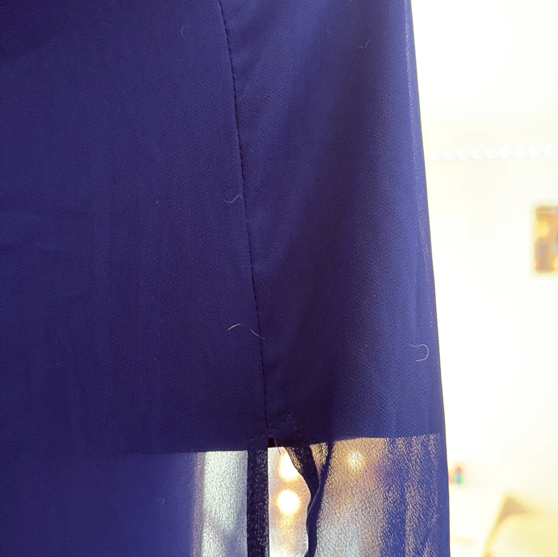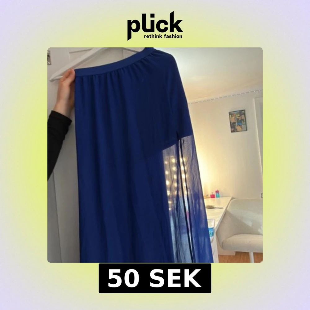 Snygg blå långkjol med bred resår i midjan och en cool transparent panel nertill. Kjolen har en flowy känsla och är perfekt för dig som gillar att sticka ut lite extra. Materialet är lätt och ger ett luftigt intryck.