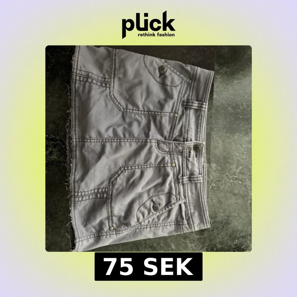 Säljer en grå kort jeanskjol med rå, fransig kant nertill. Kjolen har stora fickor både fram och bak med coola knappar och bälteshällor i midjan. Perfekt för dig som gillar en avslappnad och trendig stil. (INTE 32 kjol storlek men 32 tum väldigt stor skillnad)