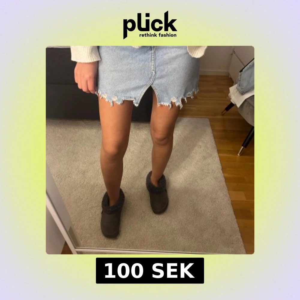 Säljer en ljusblå jeanskjol med rå fransad nederkant och en snygg slits framtill. Kjolen har en klassisk femficksmodell och stängs med dragkedja och knapp. Perfekt att styla med stickad tröja eller t-shirt.