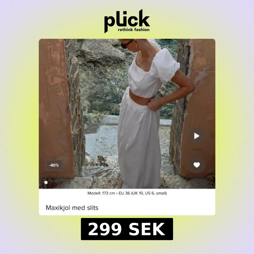 Säljer en lång, vit maxikjol med hög slits framtill. Kjolen har en rak och luftig passform. Oanvänd med prislapp kvar