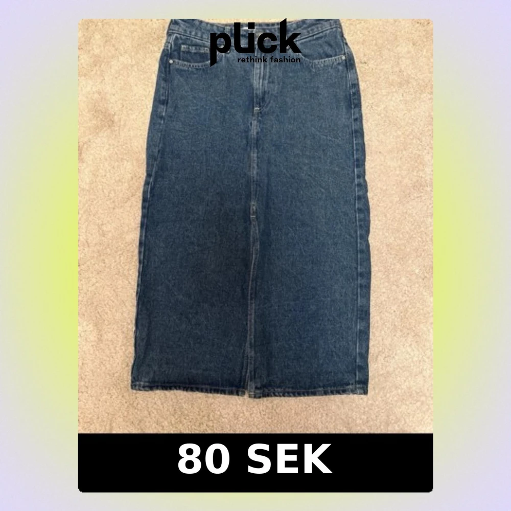 Säljer en klassisk mörkblå lång jeanskjol med raka linjer och fem fickor, inklusive två bakfickor. Kjolen har hällor för bälte och knappstängning fram. Perfekt för dig som gillar enkel och tidlös denimstil.