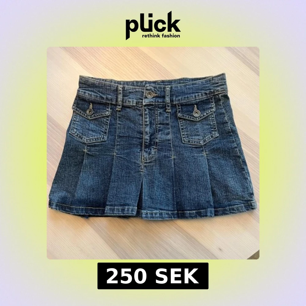 Snygg kort jeanskjol med plisserad nederdel och två fickor framtill med lock och knapp. Kjolen har bälteshällor och klassisk jeanslook i mörkblå denim. Perfekt för en cool och avslappnad stil. Populär så var snabba!!