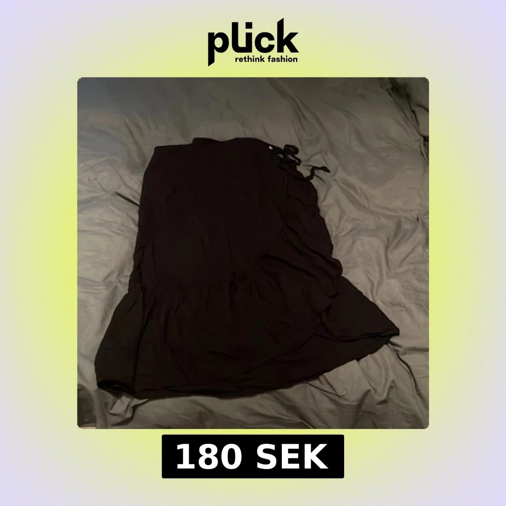 Svart omlottkjol från Pernilla Wahlgren Design i storlek 34. Kjolen har volang framtill knytband i midjan, knapp i tre olika lägen och en snygg guldig detalj vid sidan. Perfekt för dig som gillar stilrena och trendiga plagg.