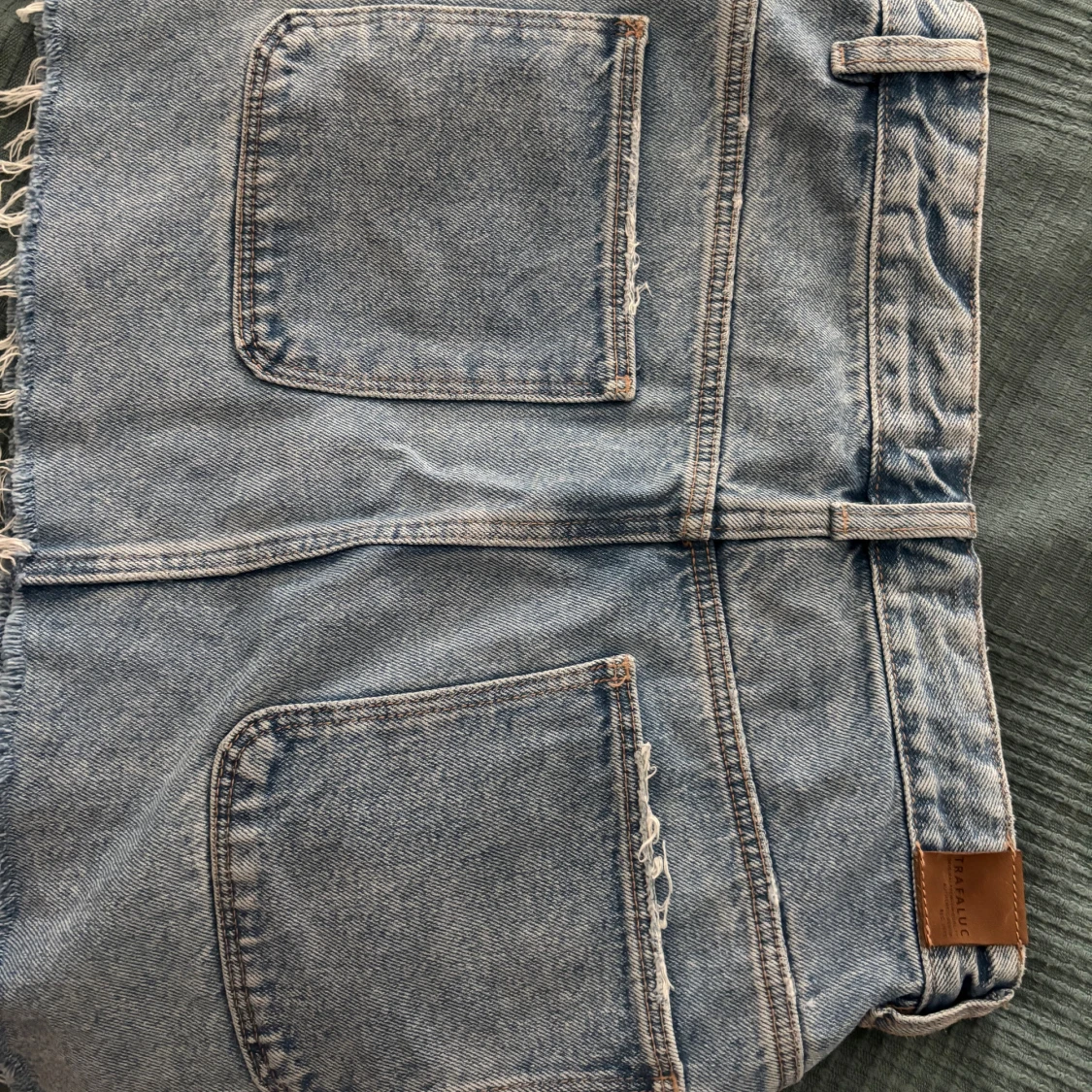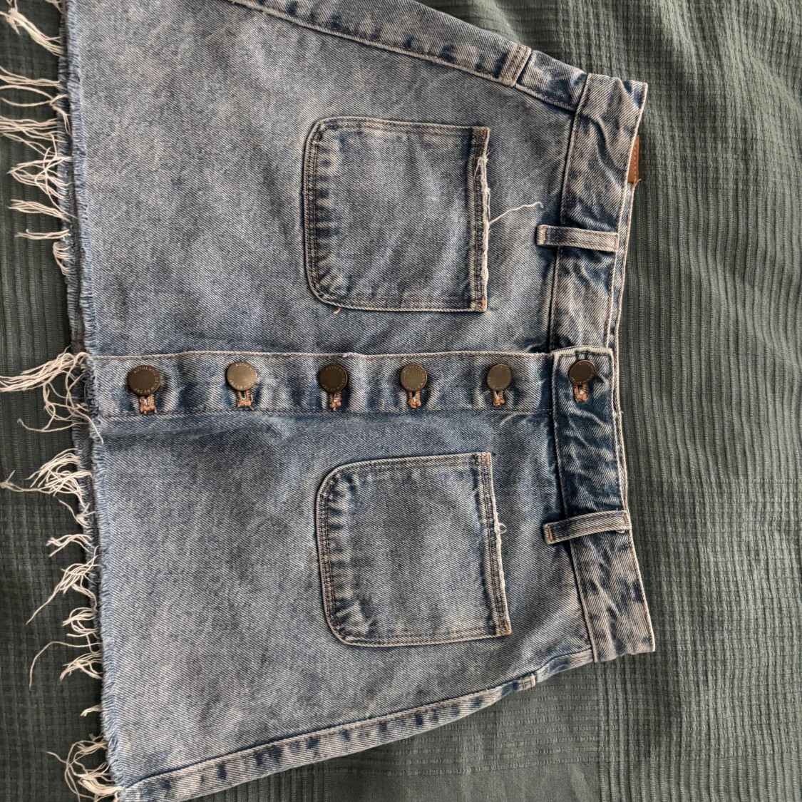 Snygg blå jeanskjol från Zara Trafaluc med råa kanter, stora fickor fram och bak samt knappar längs hela framsidan. Klassisk denimlook som är lätt att styla med allt. Perfekt för dig som gillar en avslappnad vibe.