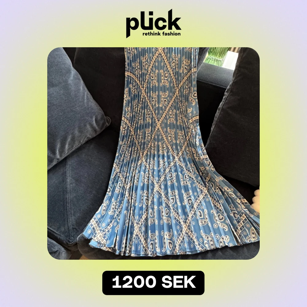 Säljer en superfin blå kjol från Sandro med ett unikt mönster i vitt och svart. Klänningen har en elegant plisserad design som ger en snygg rörelse. Perfekt för både vardag och fest! 💙