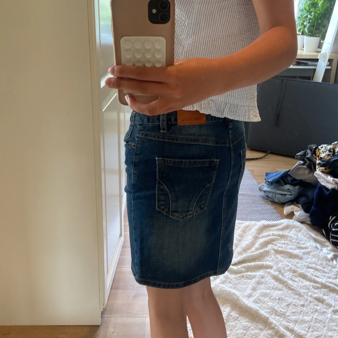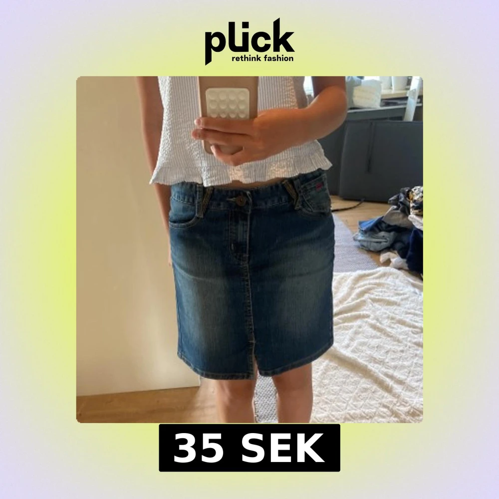 Snygg klassisk jeanskjol från Serious Sally i mörkblå denim. Modellen är rak och slutar ovanför knäna, med knapp- samt dragkedjestängning. Perfekt till sneakers eller boots för en chill look💗