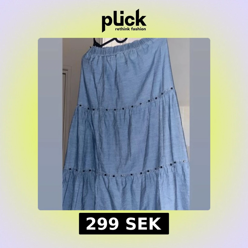 Snygg blå långkjol med volanger och elastisk midja. Perfekt för en avslappnad stil. Kjolen har dekorativa detaljer som ger en extra touch.