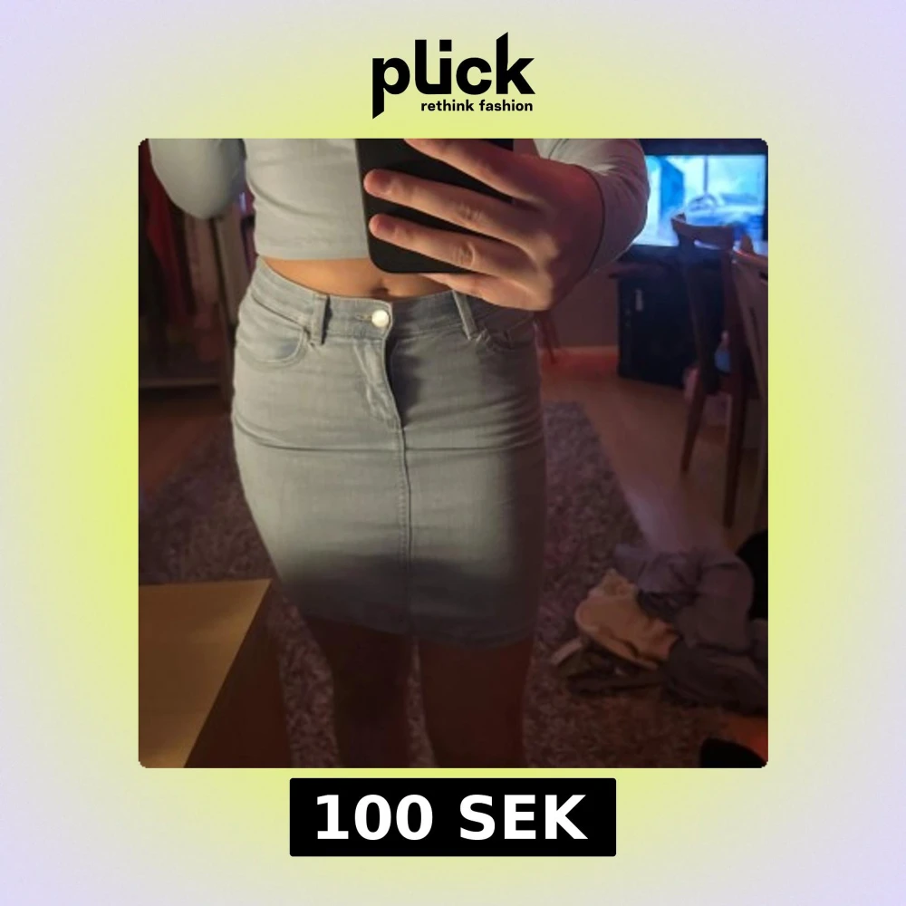 Snygg ljusblå jeanskjol med klassisk femficksdesign och knappstängning fram. Kjolen är kort och har en tight passform som framhäver figuren. Perfekt att matcha med en croppad topp eller hoodie. Materialet är mjukt denim och kjolen har bakfickor och slits bak.