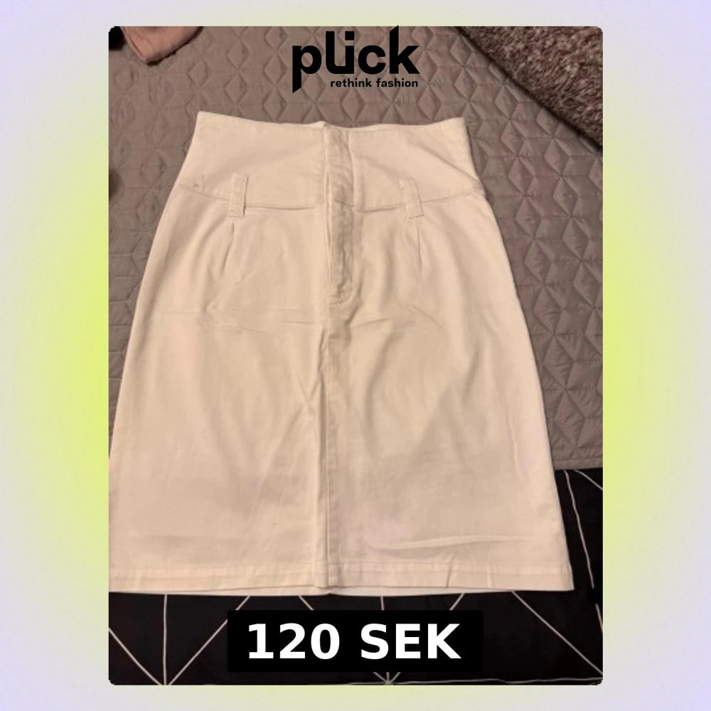 Säljer en stilren vit pennkjol med hög midja och bälteshällor. Kjolen har en rak passform och är sydd i ett mjukt bomullsliknande material. Perfekt att matcha med en crop top eller en oversized tröja för en trendig look.
