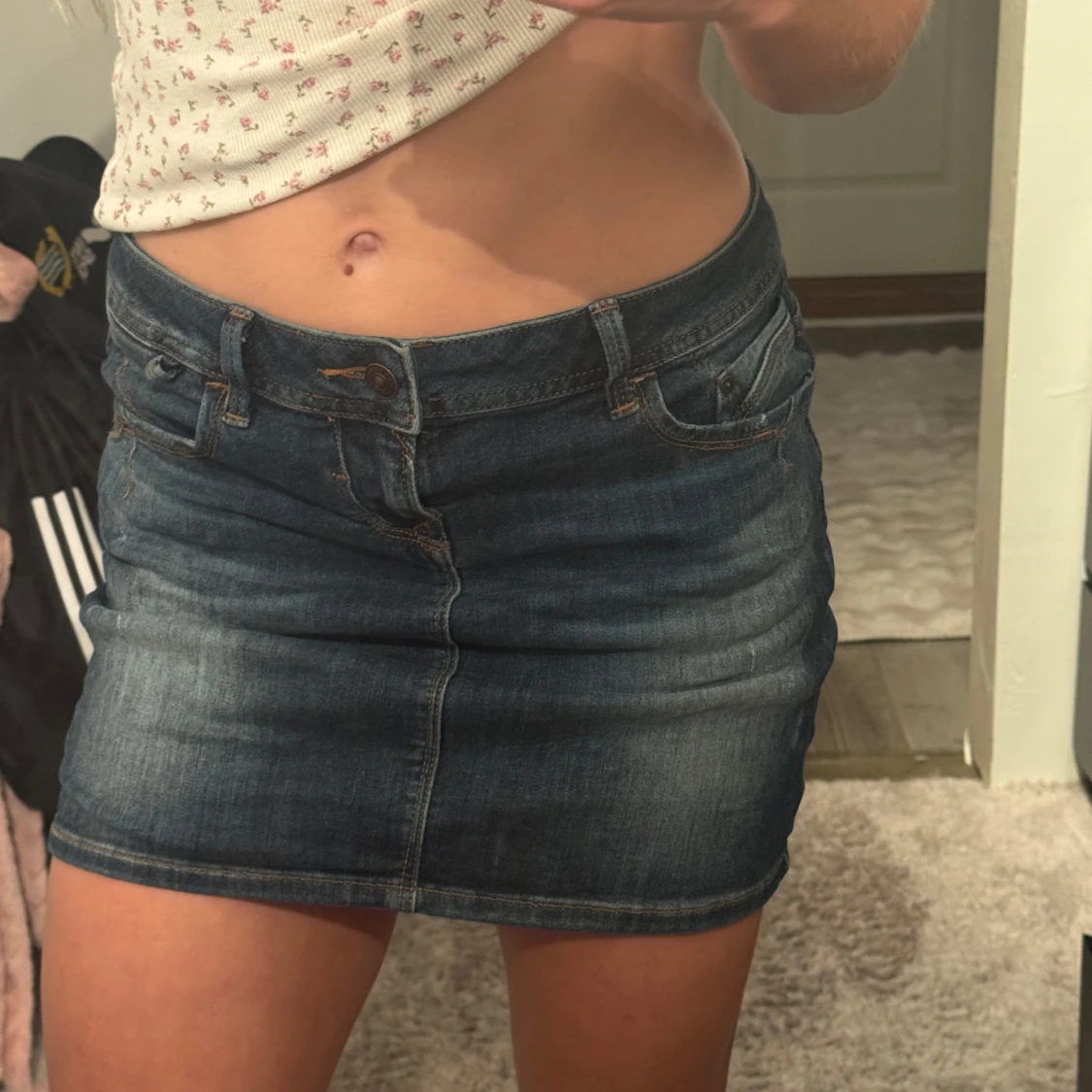 Säljer en klassisk mörkblå jeanskjol med fem fickor och bälteshällor. Kjolen är kort och har en snygg tvättad look med synliga sömmar. Perfekt för dig som gillar en enkel men trendig stil. Från Lbt
