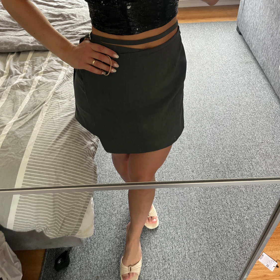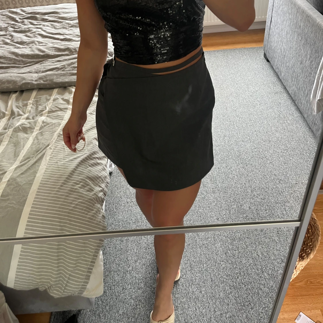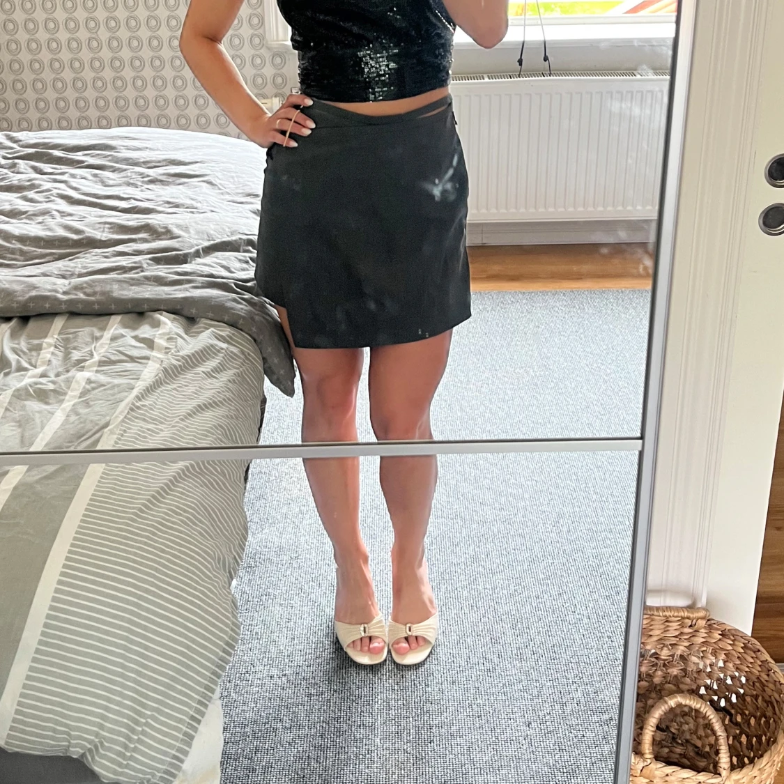 Kortkjol med stilren design och liten slits på sidan. Kjolen har en enkel, rak passform och är perfekt att matcha med crop tops eller snygga sandaler. Materialet känns lätt och passar bra för varmare dagar. Ord pris 1599kr, aldrig använd