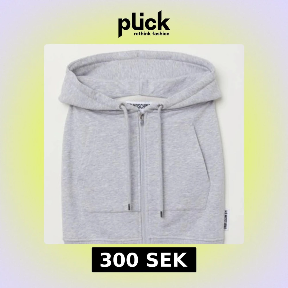 Säljer en grå kjol från Moschino i sweatshirtmaterial med dragkedja framtill, huva och snörning i midjan. Med tillhörande top. Kjolen har fickor på sidorna och en sportig look. Perfekt för dig som gillar streetwear och vill sticka ut.