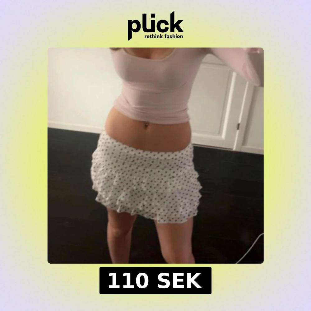 Supersöt mini kjol i vit med svarta prickar och flera lager volanger. Kjolen har en tight passform upptill och är gjord i ett lätt, luftigt material som ger en flowig känsla. Perfekt för dig som gillar en lekfull och trendig stil. Säljer en oanvänd då ja råkade beställa 2st