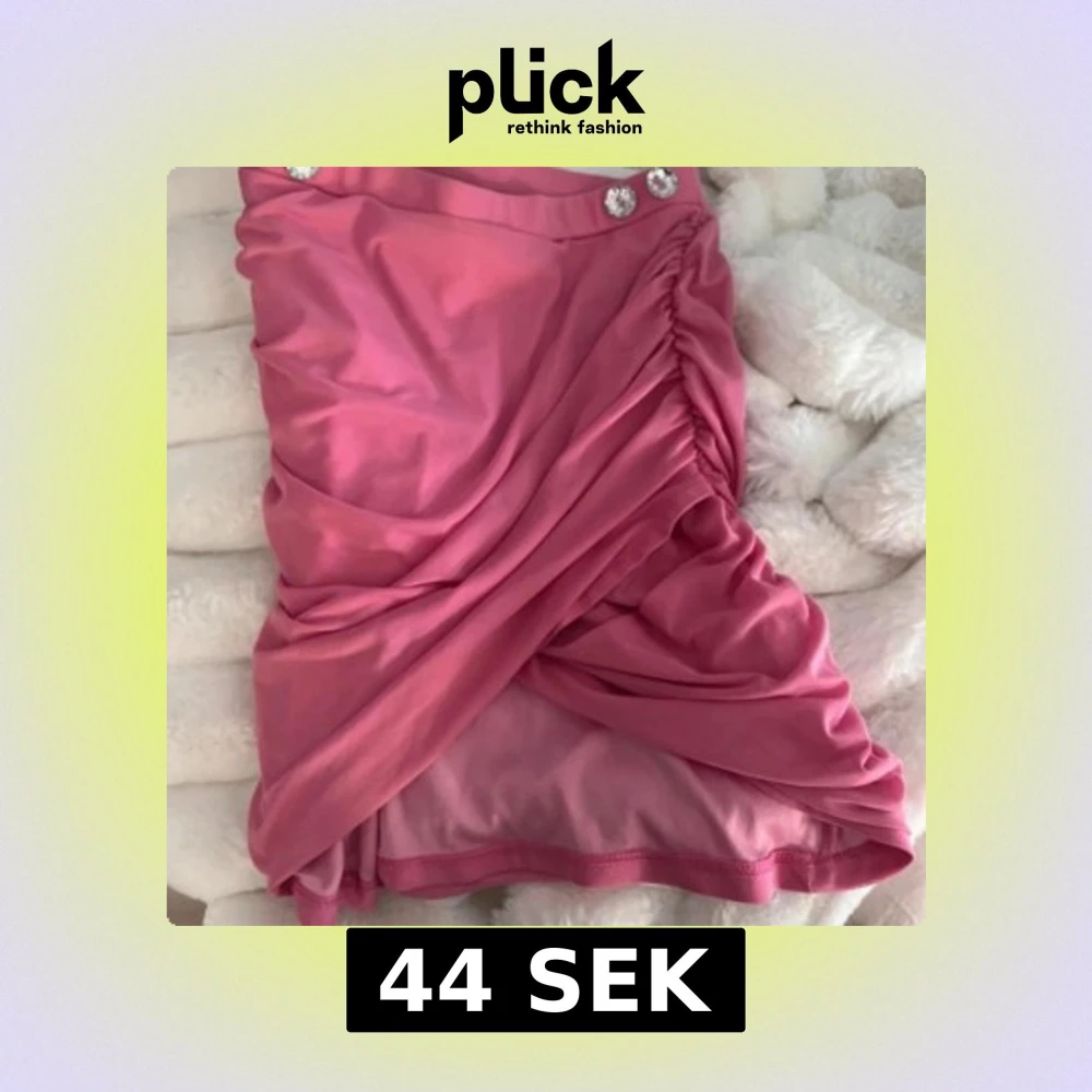 Snygg rosa omlottkjol med dekorativa knappar i midjan. Kjolen har en elegant drapering och är perfekt för en festlig look. Den är kort och har en feminin passform.