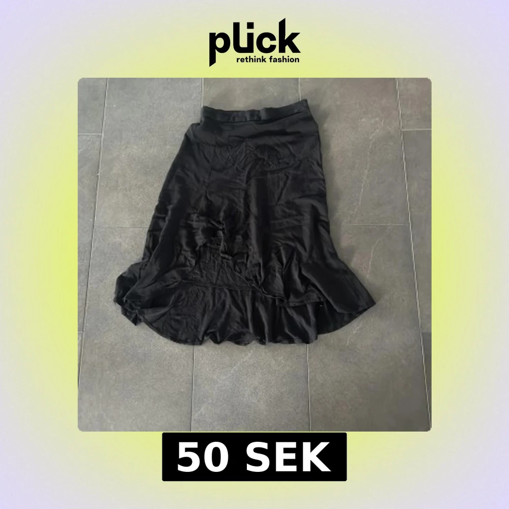 Svart långkjol från Amisu i storlek 36. Kjolen har en lätt glansig yta, volang nertill och resår i midjan för skön passform!❤️