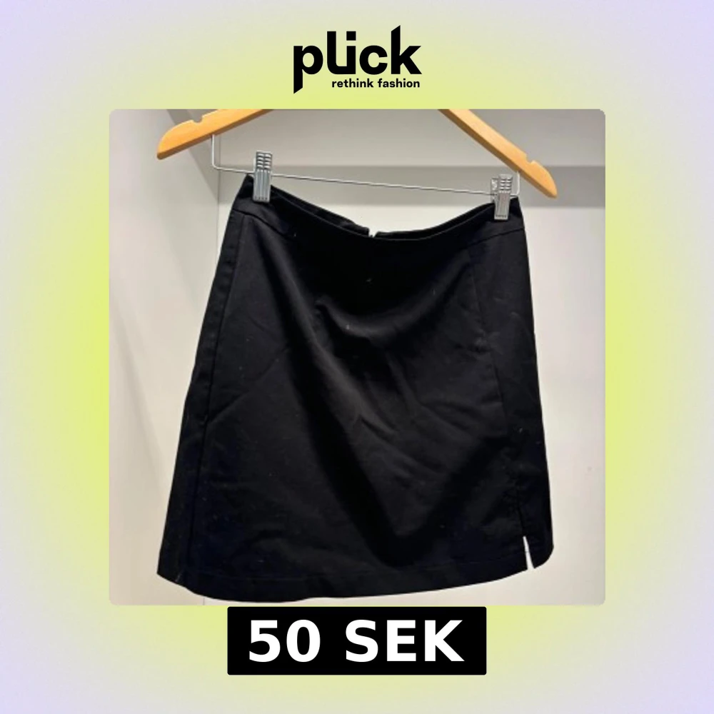 Enkel svart kortkjol med rak passform. Kjolen har en stilren look utan synliga detaljer och passar perfekt till sneakers eller boots. Perfekt basplagg för din garderob.