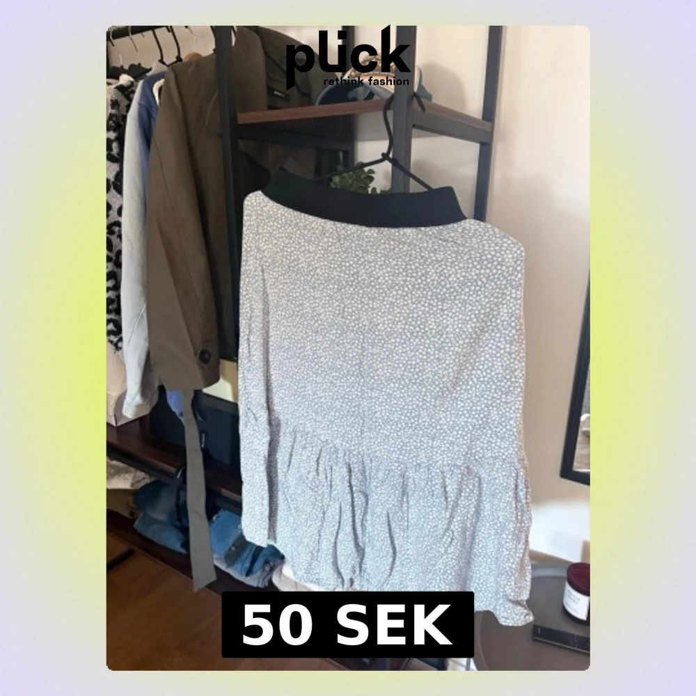 Supersöt ljusblå kjol med volang och små vita blommor. Kjolen har en bred svart midjeresår och är perfekt för dig som gillar en feminin och avslappnad stil. Passar till både sneakers och sandaler.