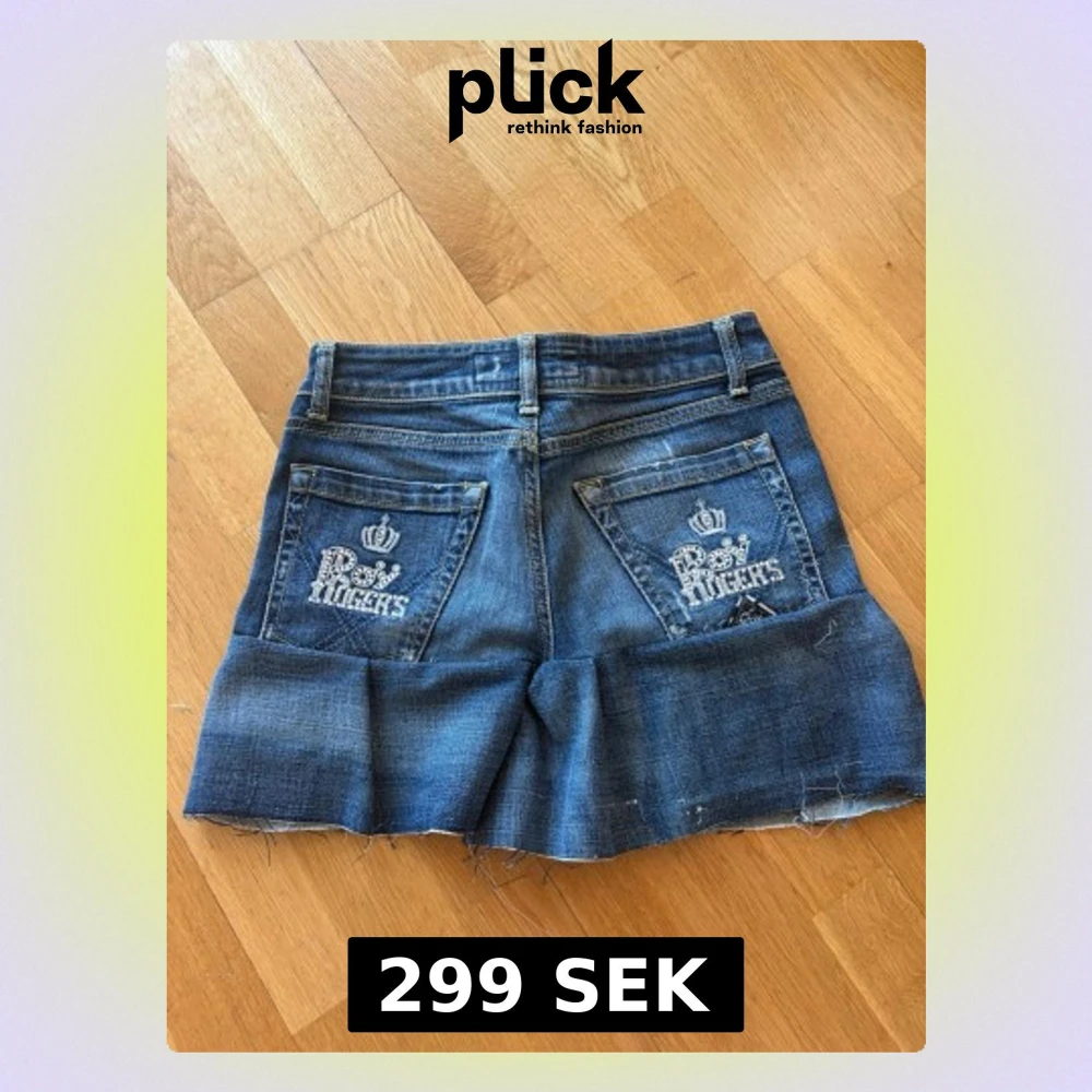Säljer en blå jeanskjol från Roy Rogers med rå kant nertill och klassiska fem fickor. Kjolen har broderade stras kronor på bakfickorna och bälteshällor i midjan. Perfekt för 2000s stil. Skulle dock säga att den är mindre än storlek 38, kanske mer en 36. Säljer den då den inte passar längre. Pris går att diskutera 🥰