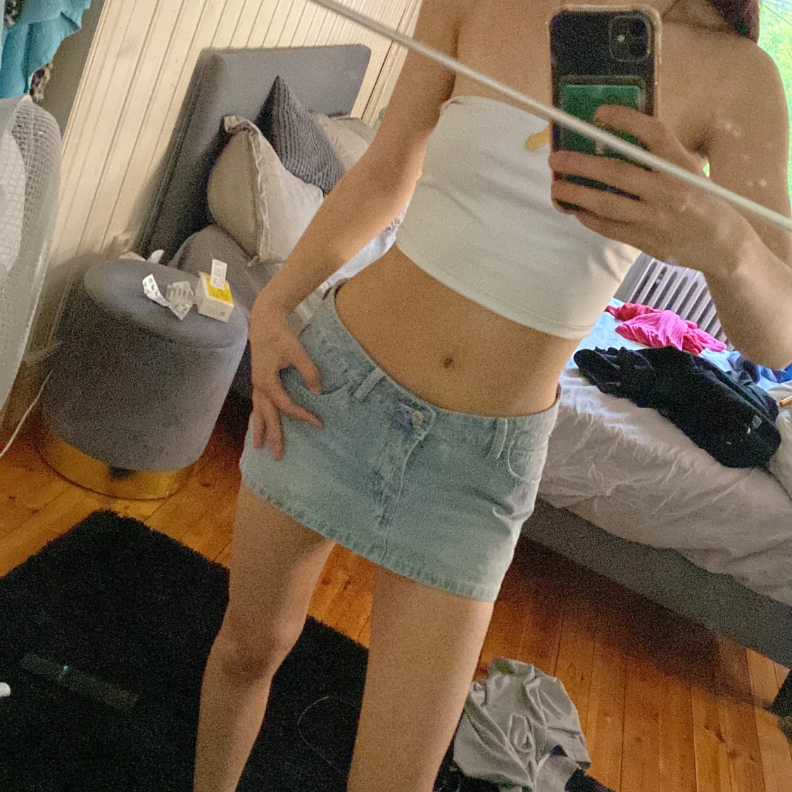 Ljusblå jeanskjol i kort modell