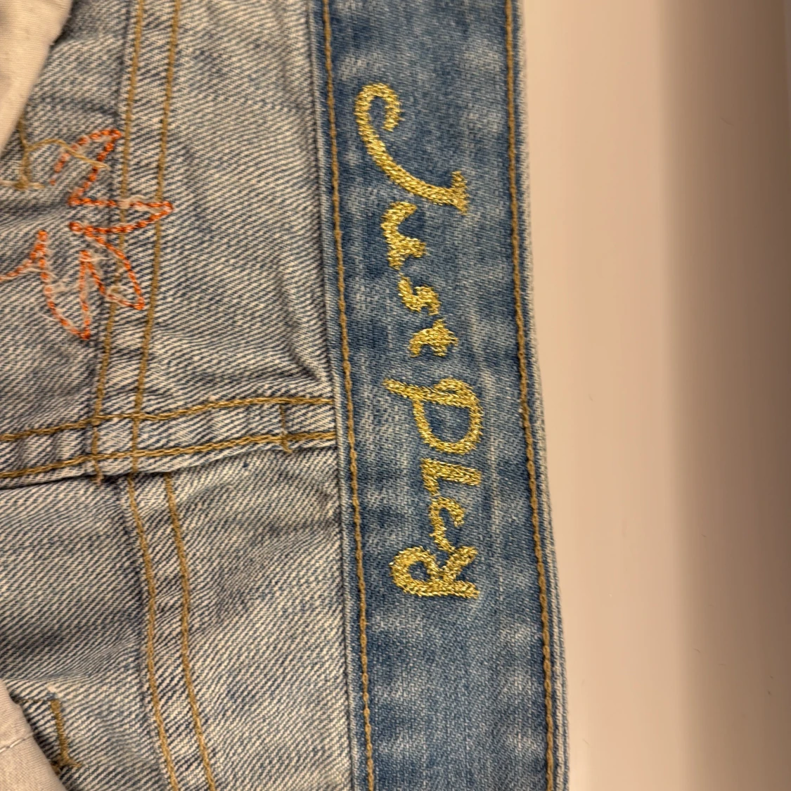 Snygg ljusblå jeanskjol från Just Play med broderade detaljer och coola fickor bak. Kjolen har gul brodyr i midjan och orange broderi vid fickan. Klassisk femficksmodell med dragkedja och knapp framtill. Perfekt för dig som gillar streetstyle.💕💕💕