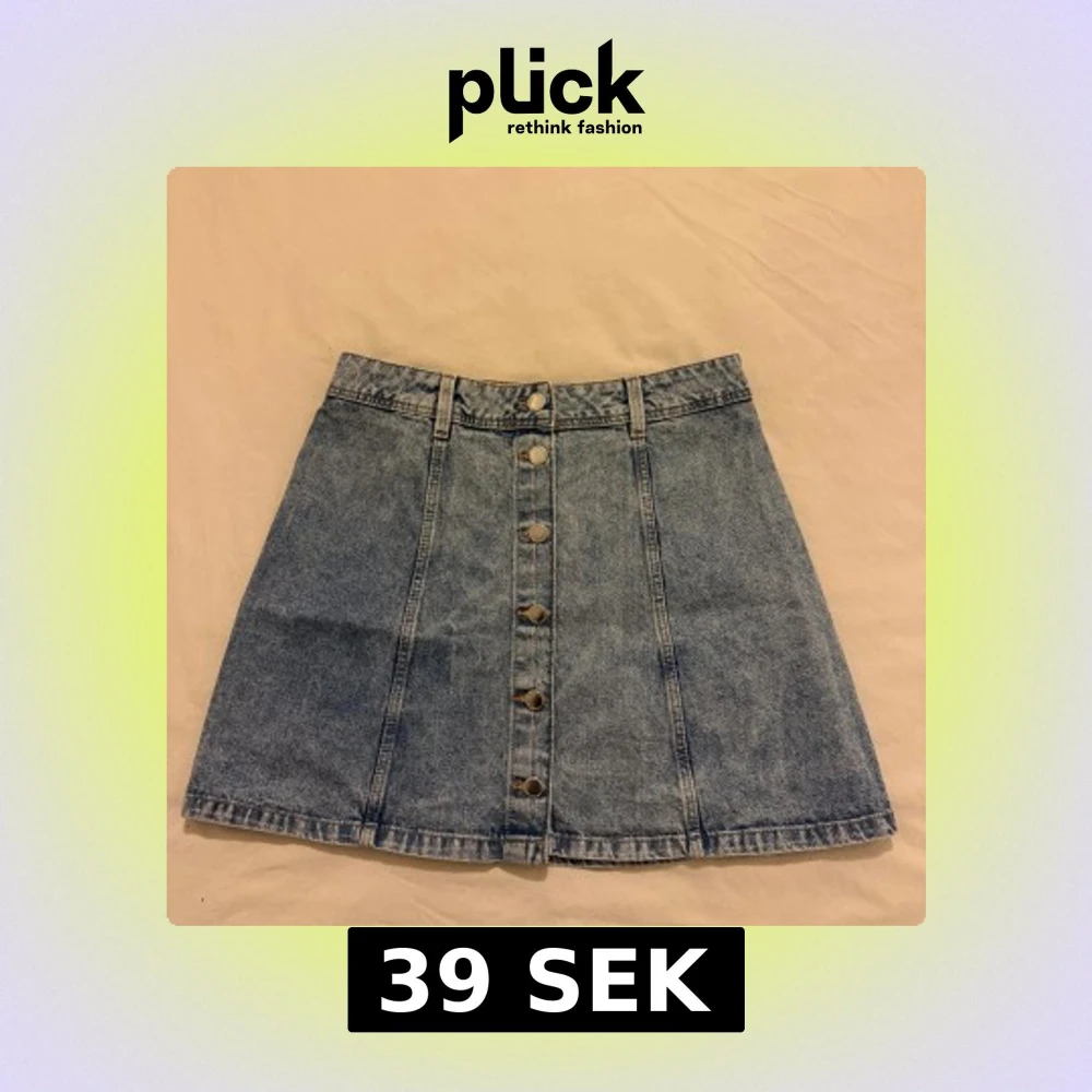 Trendig jeanskjol i kort med knappar framtill. Perfekt för en avslappnad stil. Kjolen har bälteshällor och en klassisk blå jeansfärg.