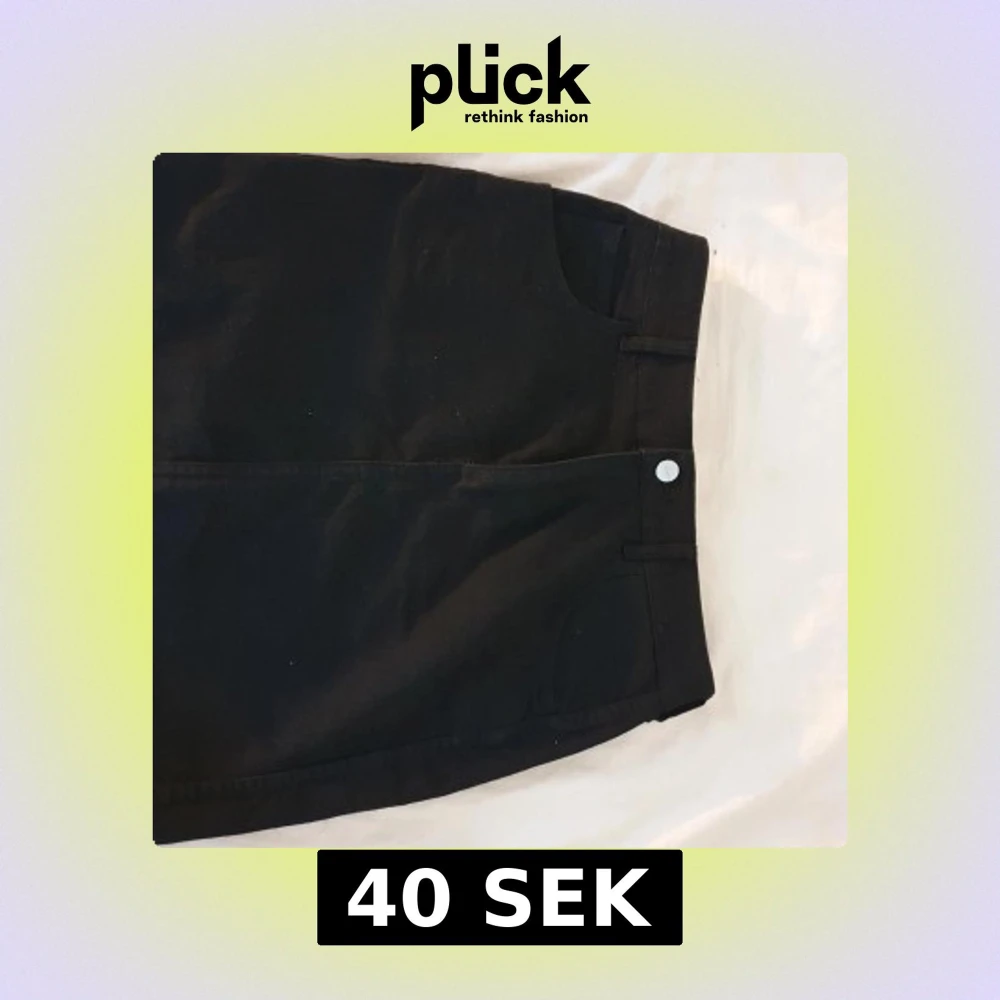 Svart kort jeanskjol från &Denim i storlek 38. Klassisk femficksmodell med rå kant nertill och bälteshällor. Kjolen har knapp och dragkedja framtill samt två bakfickor. Perfekt till sneakers eller boots.