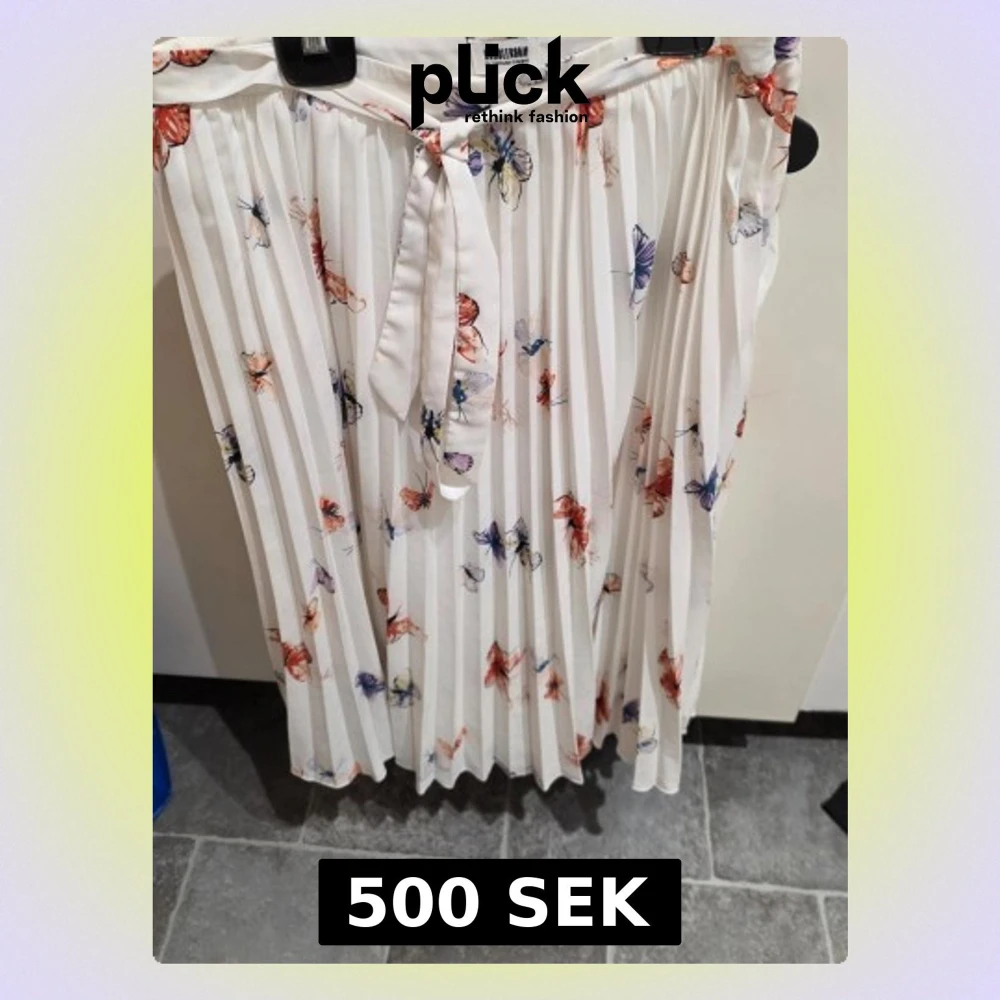 Säljer en vit långkjol från Carolina gynning med plisserad design och färgglatt fjärilsmönster. Kjolen har ett snyggt knytband i midjan och är gjord i mjuk polyester med lite stretch. Perfekt för dig som gillar detaljer och vill sticka ut med en unik look.