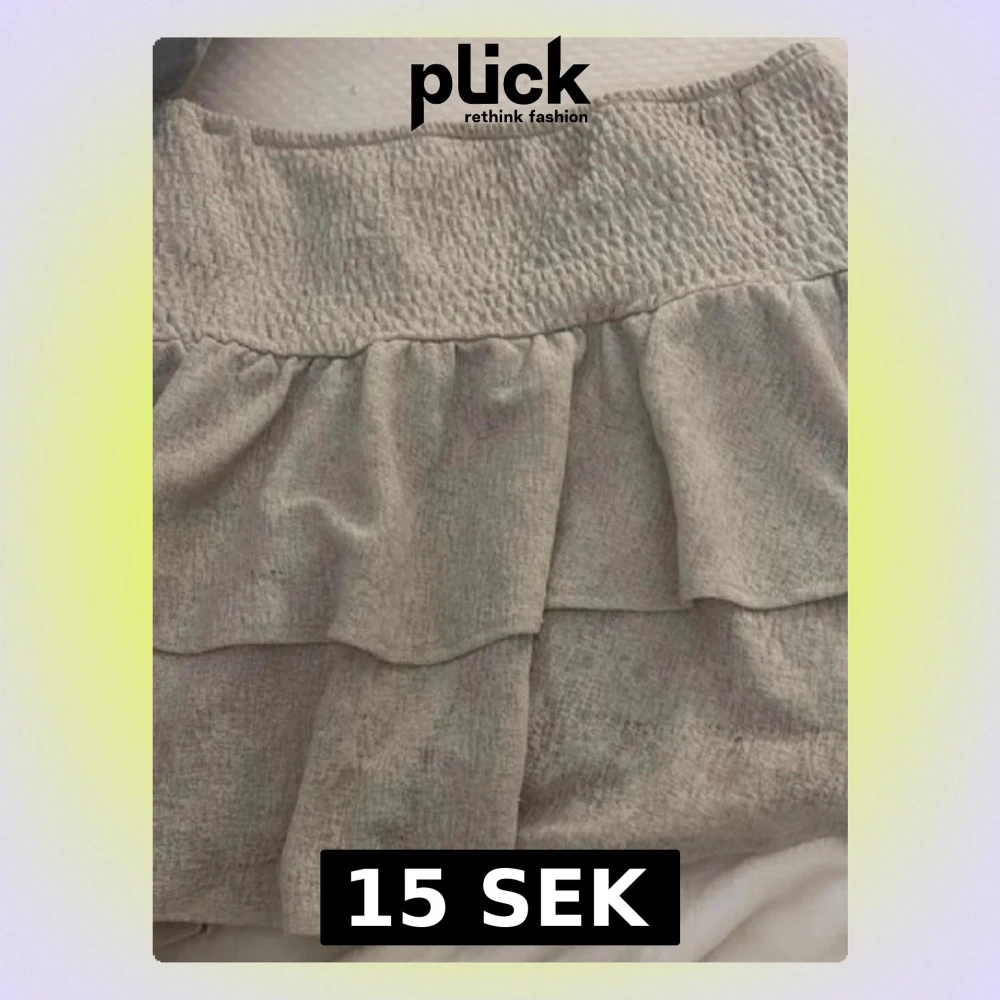 Supersöt beige grön kjol med bred smock i midjan och dubbla volanger. Kjolen har en mjuk struktur och känns riktigt flowy och bekväm. Perfekt för dig som gillar en enkel men ändå trendig look.