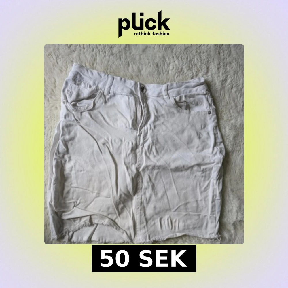 Vit jeanskjol från Amisu i storlek 42. Kjolen har klassisk femficksdesign, dragkedja och knapp framtill samt rå, fransig nederkant för en avslappnad vibe. Perfekt till sneakers eller sandaler för en cool look.