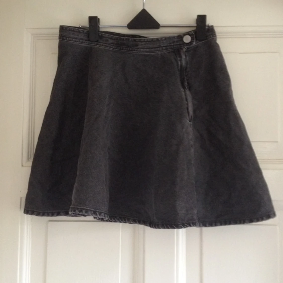 "Washed out"-svart jeans kjol med snygg knapp i sidan