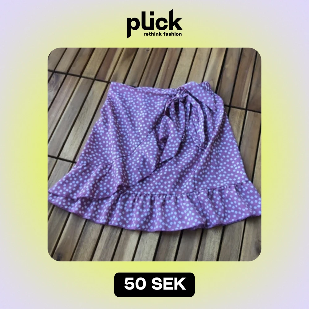 En rosa-lila kjol från SHEIN med vita blommor. Kjolen har en volangdetalj längst ner, resår i midjan på baksidan och ett knytband i midjan. Tillverkad av 100% polyester.