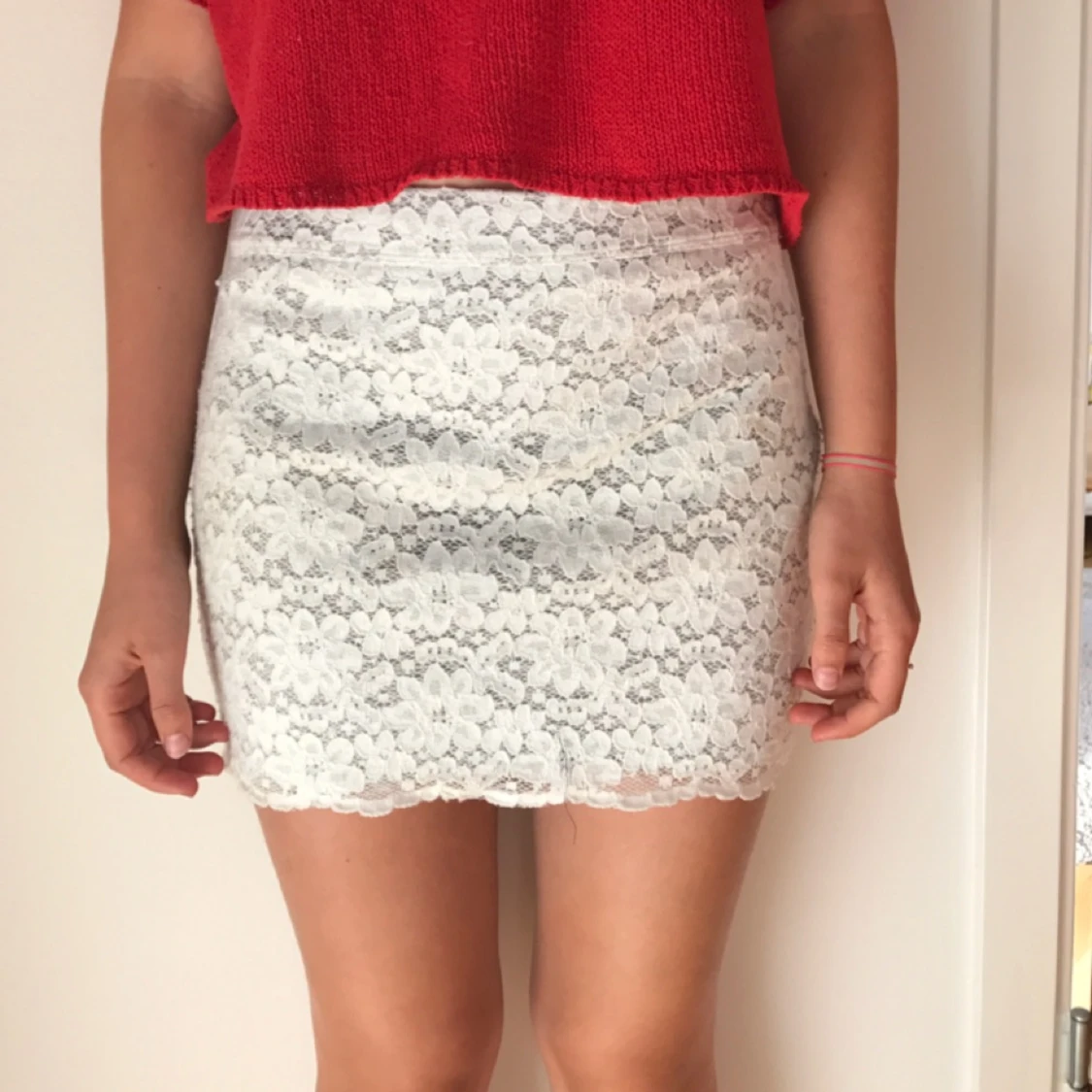 Vit spets kjol med grå fordring i storlek S Abercrombie & Fitch Betalning sker via swish Köparen står för frakt