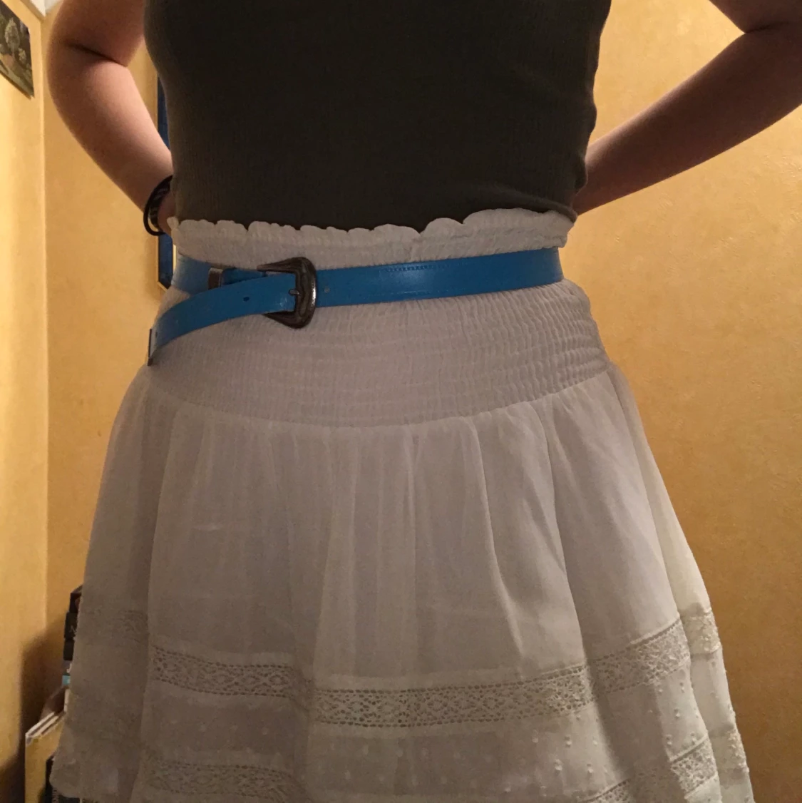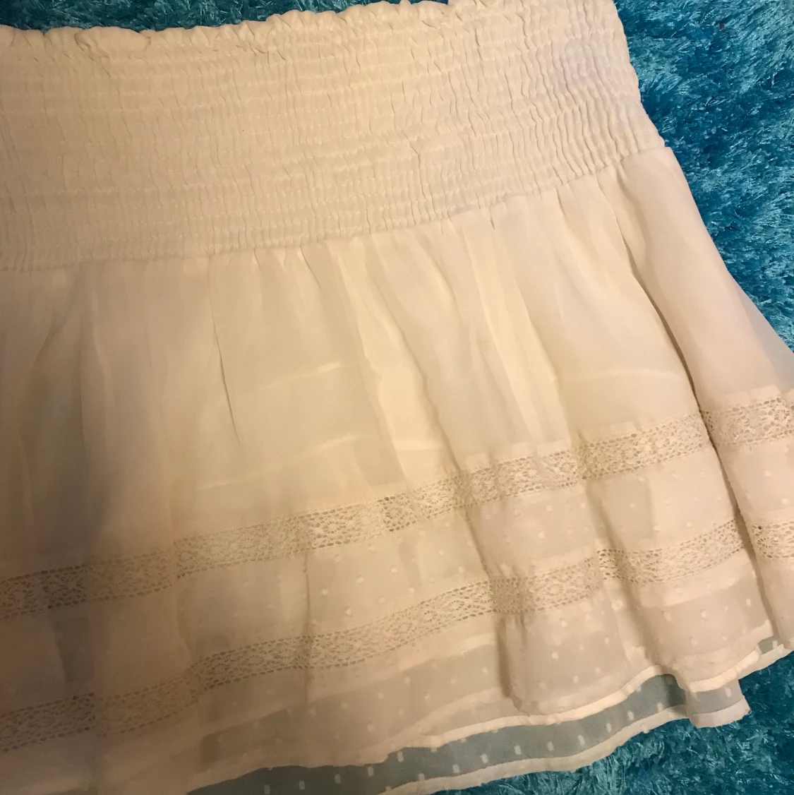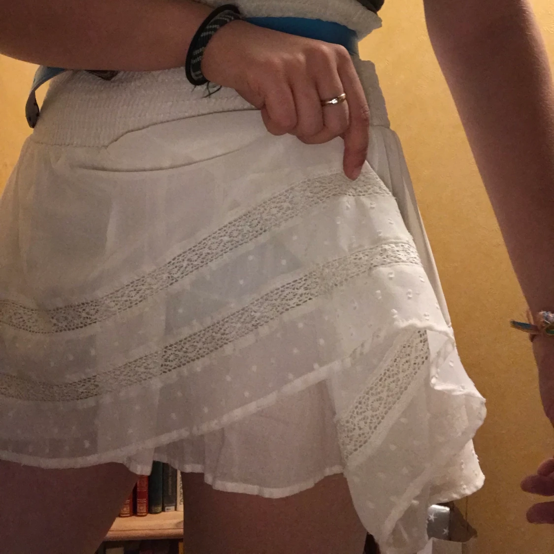 Vit söt kjol strl medium eller large, midjan är elastisk. Använd en gång, i nyskick. Två lager tyg broderat🖤 (frakt ingår ej)