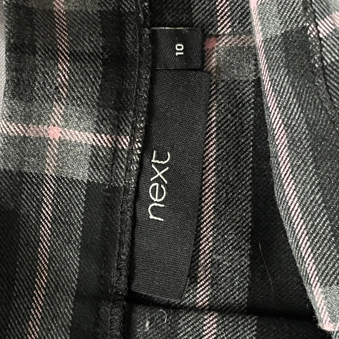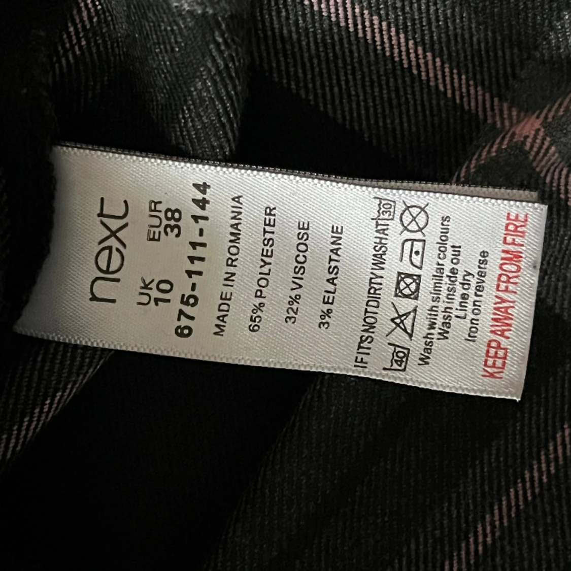 Next kjol i storlek 10 (EUR 38). Svart med grå och rosa Rut mönster. Köpte för ett par år sen men den kommer inte till användning då den inte passar mig/min stil längre. Kontackta gärna för frågor.
