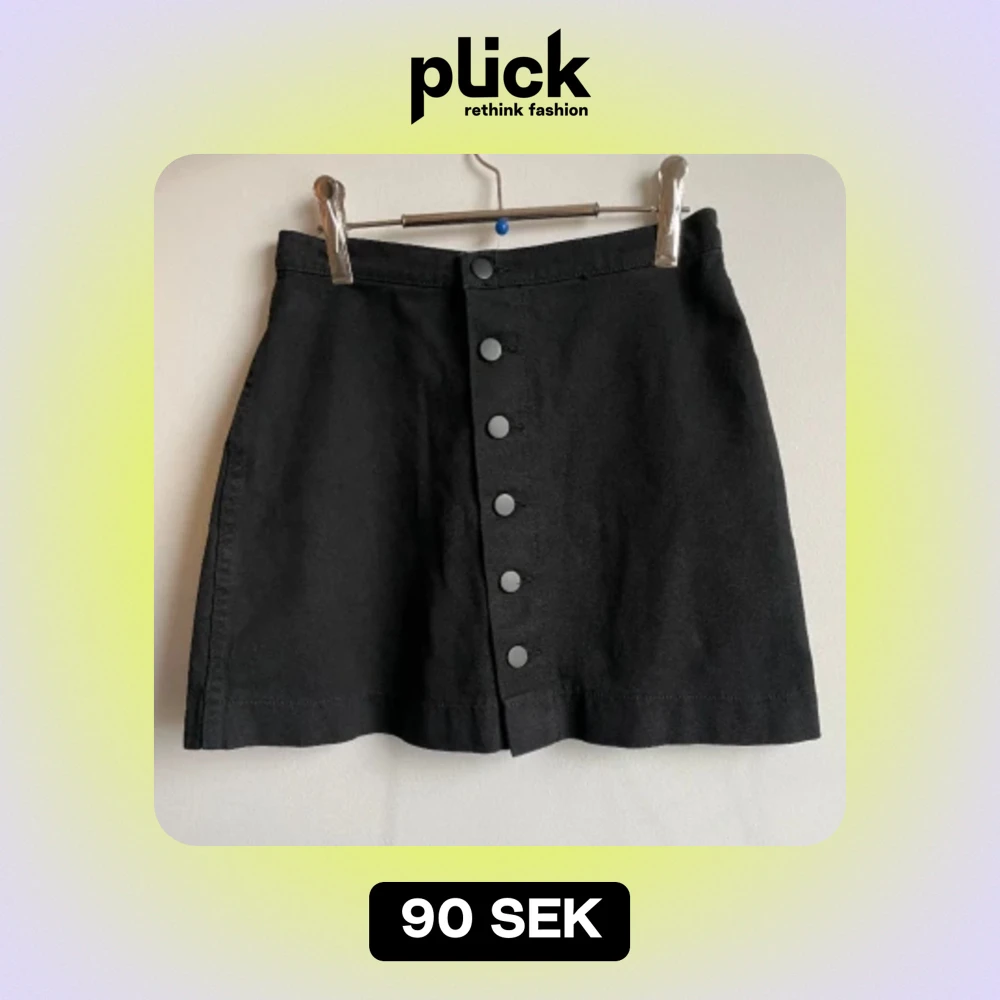 Svart jeanskjol med knappar från American Apparel. 100% bomull. Bra skick!!