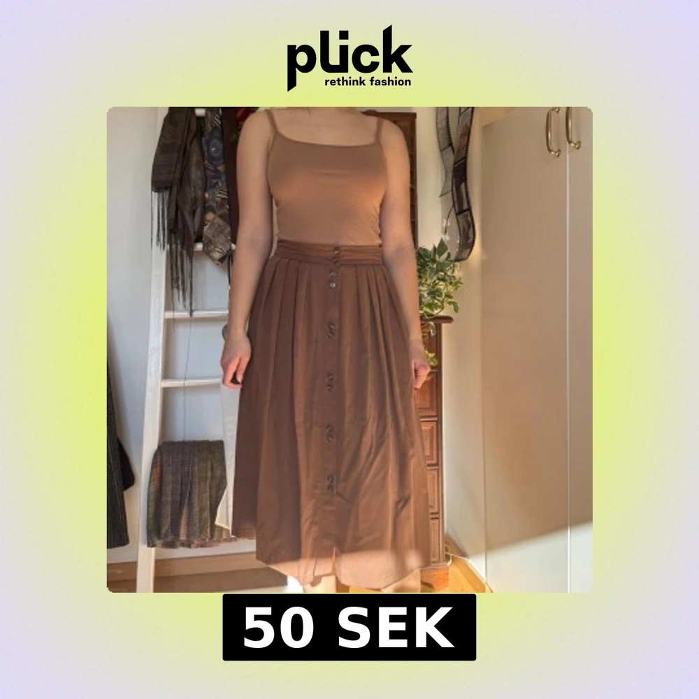 Köpt secondhand och använd en del. Säljer en stilren brun kjol med knappar framtill.